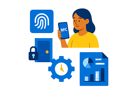 From offices to warehouses, onsite employees need accurate and secure time tracking that integrates directly with workplace access. TimeClock 365 is an onsite employee attendance system that combines biometric verification, NFC smartphone access, and real-time reporting to keep your workforce efficient and compliant.
